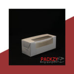 Packzy’s macaron box is designed to present macarons, sweets, and delicate treats beautifully. Featuring a transparent window and a clean white finish, this box is ideal for bakeries, gifting, and special occasions.