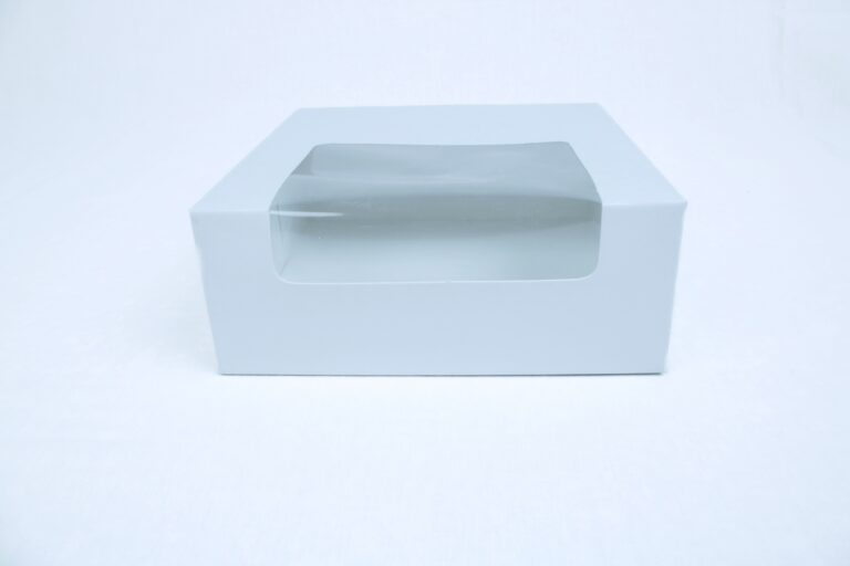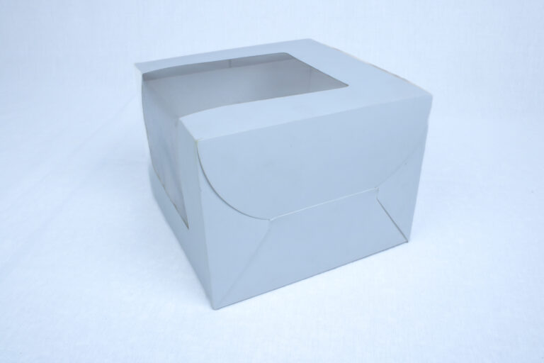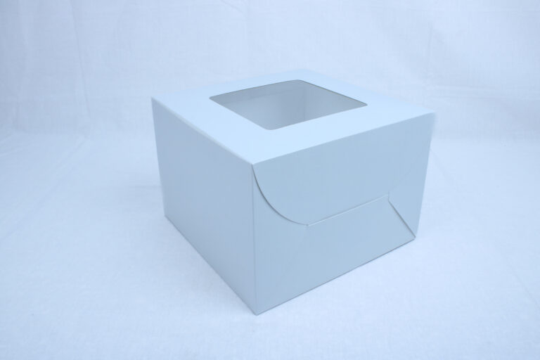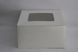 Premium white cake box with a large transparent window, designed for medium to large cakes. Made from food-safe, eco-friendly materials, perfect for bakeries, events, and professional cake presentation.