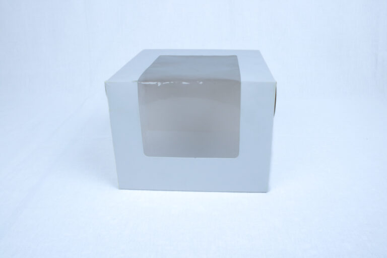 White <strong data-start="6" data-end="55">8″ × 8″ × 4″ cake box with transparent window</strong>, ideal for 2 pound cakes and desserts. Sturdy, food-grade packaging for bakery takeaway.